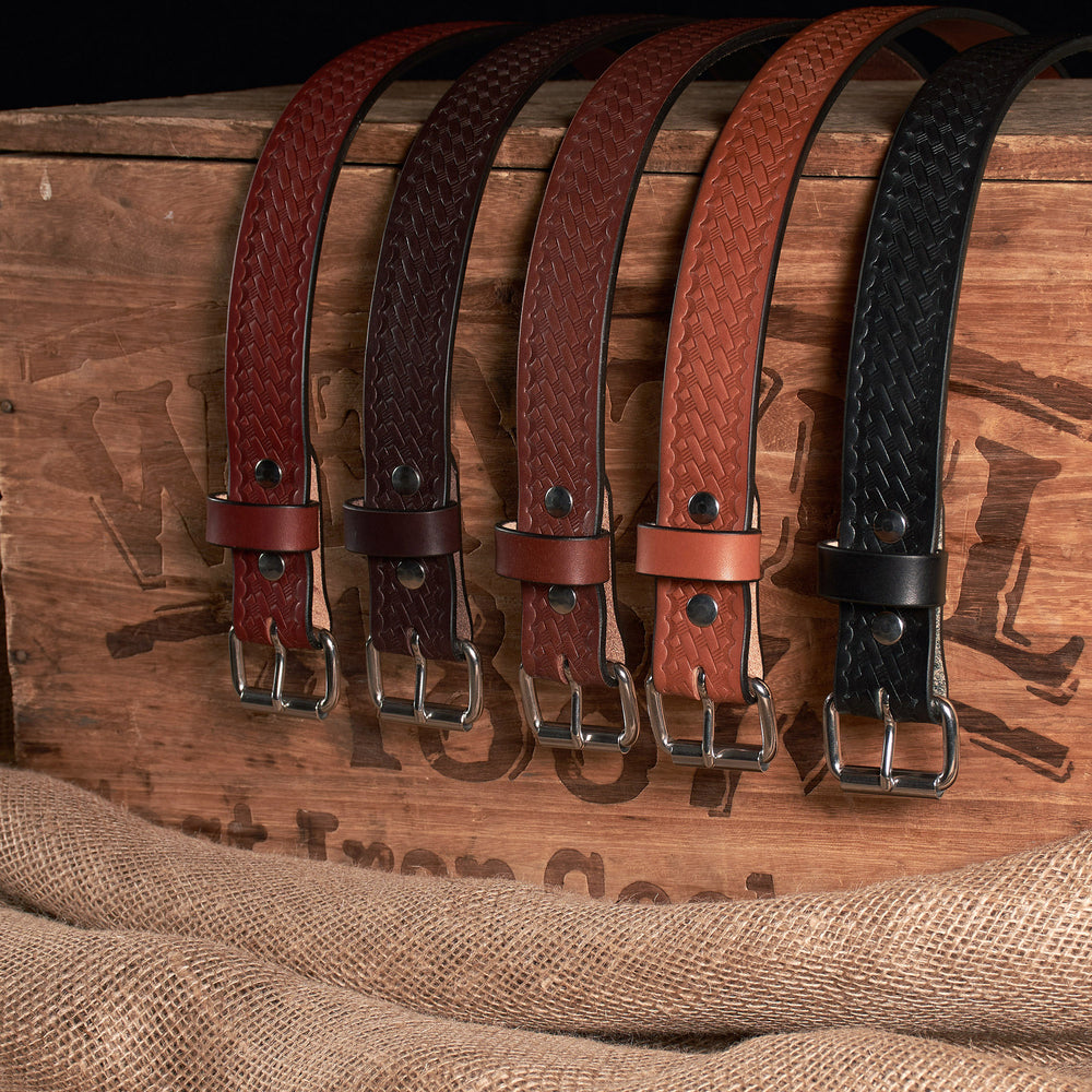 Featuring a Stainless Steel Roller Buckle, this Basketweave Embossed belt allows for a personalized touch, thanks to heavy-duty durable snaps that make changing the buckle a breeze. Whether you’re carrying tools, holsters, or magazines, this belt is designed to accommodate your needs seamlessly. Proudly handmade in the USA, it’s the last belt you will ever need to buy.