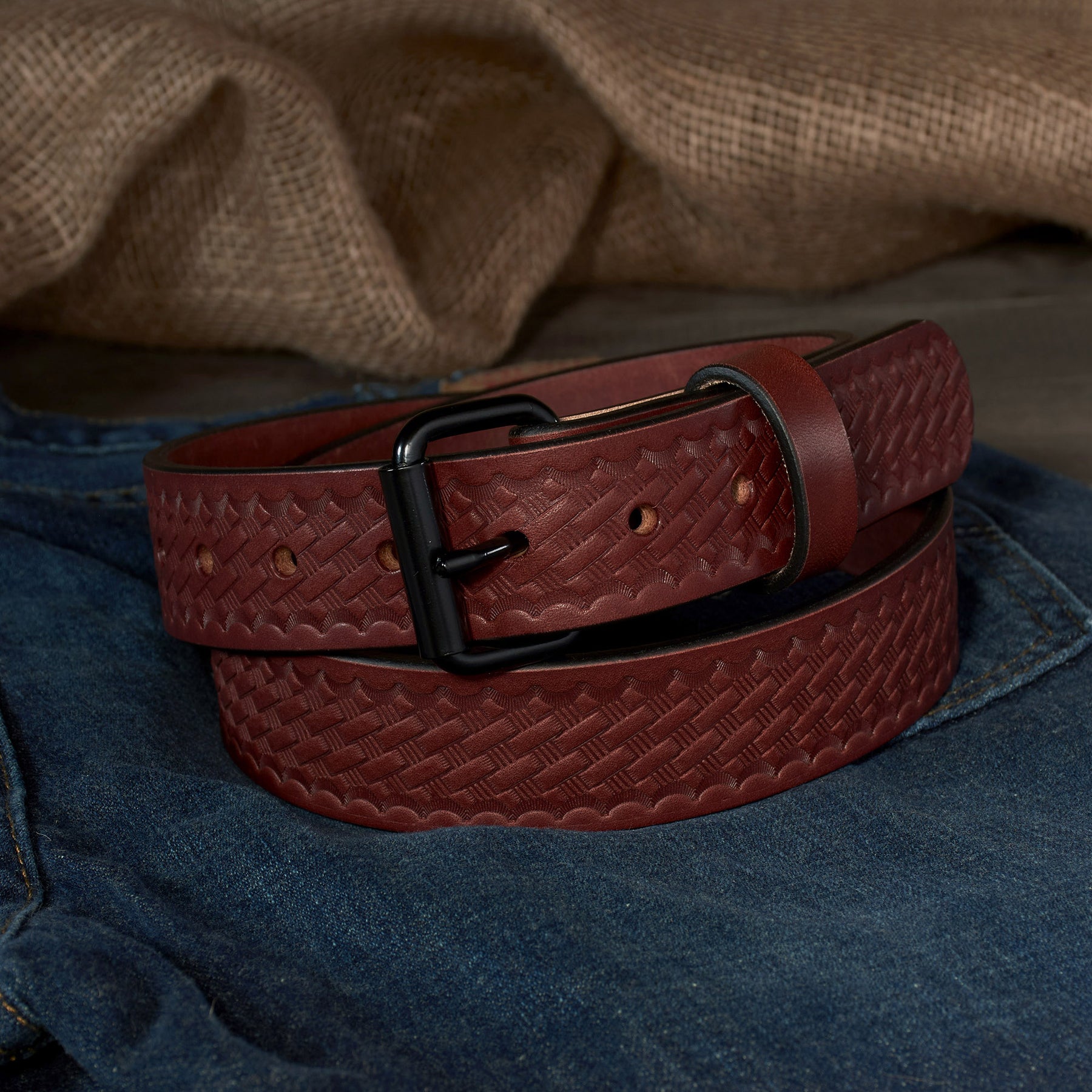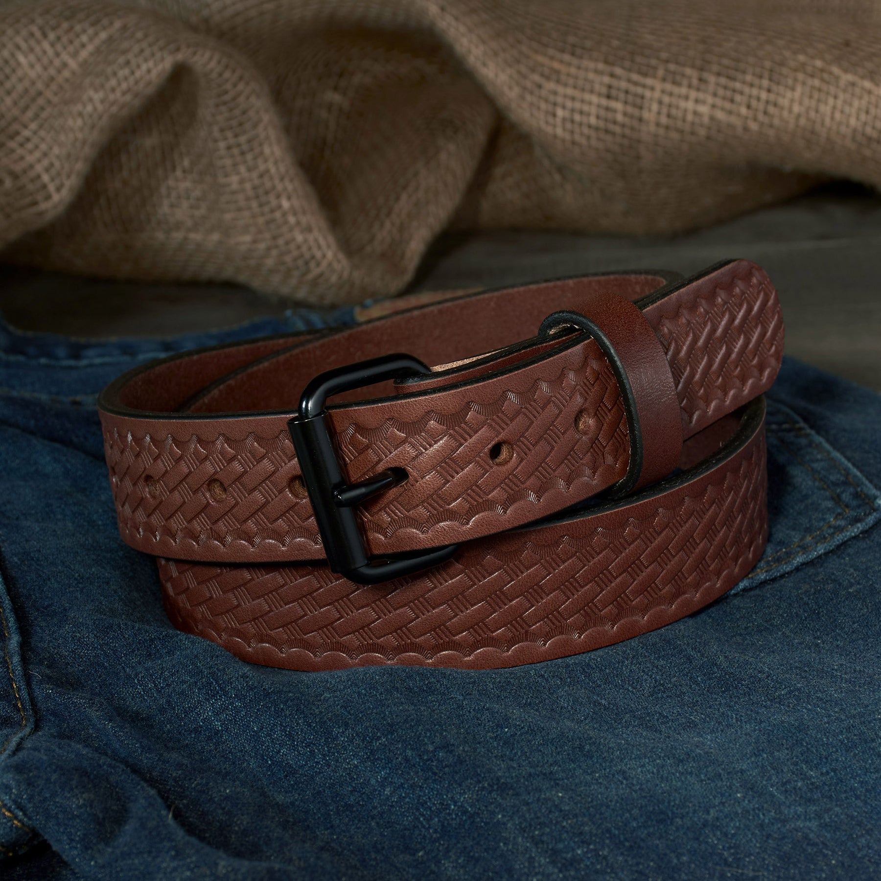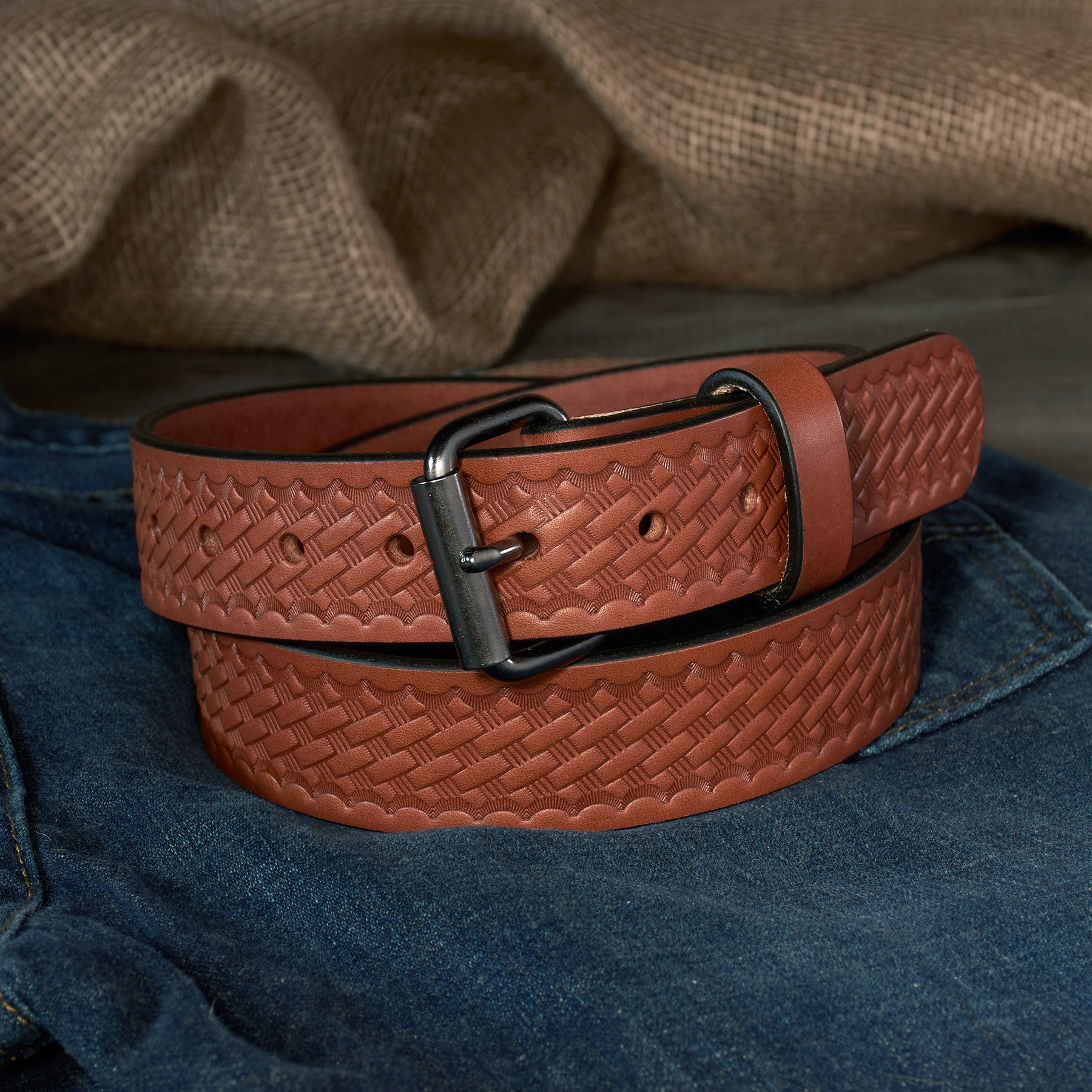 Experience the durability of the Men’s Full-Grain Basketweave Embossed Leather Gun Belt from The Outfitter HD Series Collection!